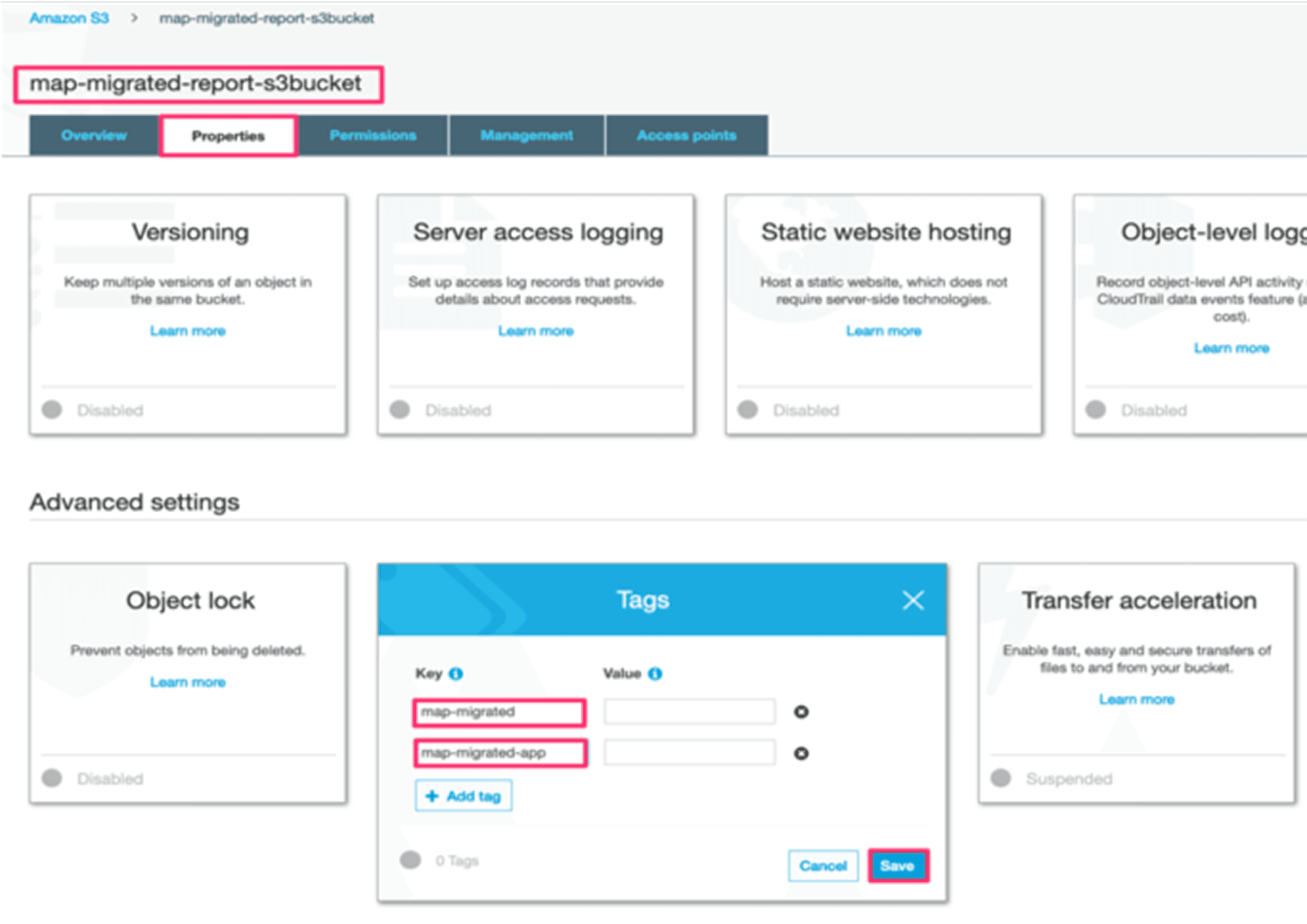 Activate the tag in AWS Billing → Cost Allocation Tags before starting migration waves. Then apply it to all eligible resources: EC2 instances, EBS volumes, RDS databases, S3 buckets, Lambda functions, and 50+ other services listed in MAP 2.0 documentation.