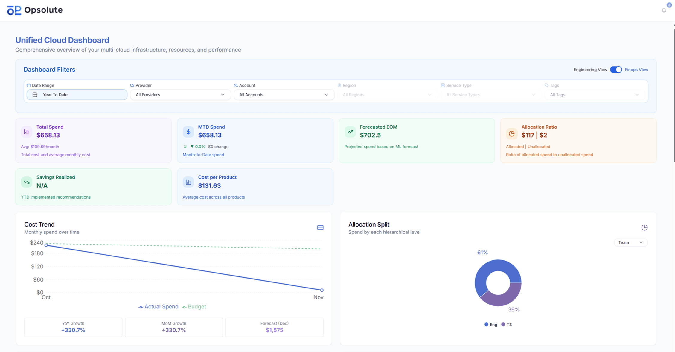 Ready to unify your cloud cost intelligence? Request an Opsolute demo to see how unified multi-cloud visibility, Tag Management, and Intelligent Showback eliminate tool sprawl while delivering actionable insights across AWS, Azure, and GCP.