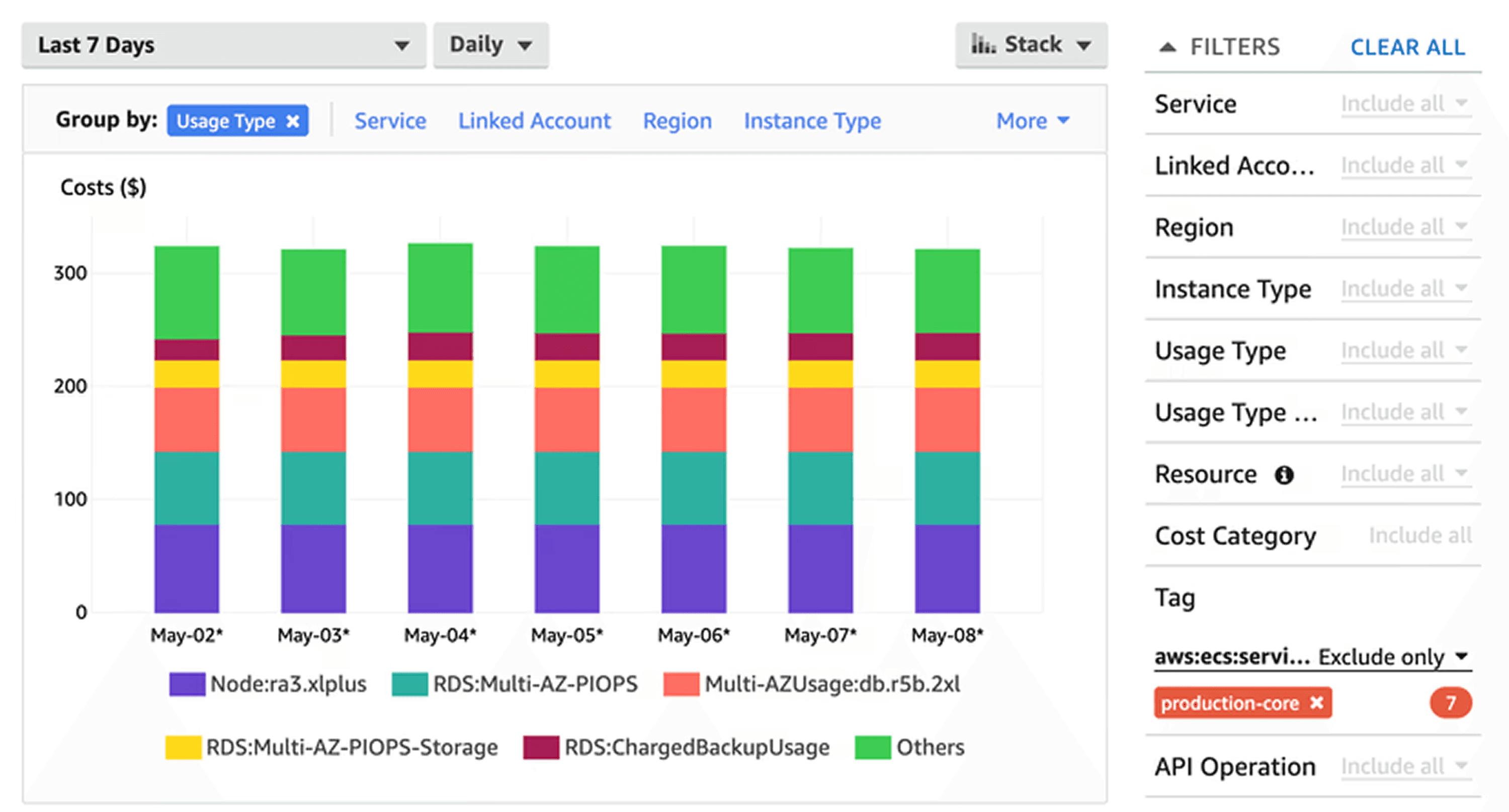 Environment-specific spending (prod vs. dev)