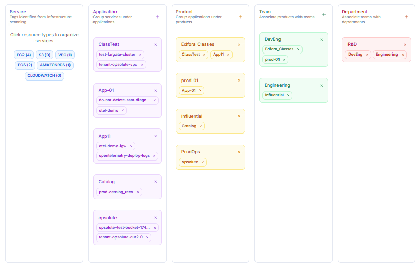 Automates resource clustering by product line, customer tier, or region for instant showback